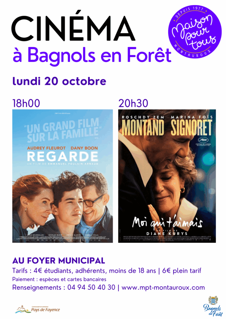 La Maison Pour Tous réalise les projections à Bagnols-en-Forêt les 1er et 3ème lundis de chaque mois.