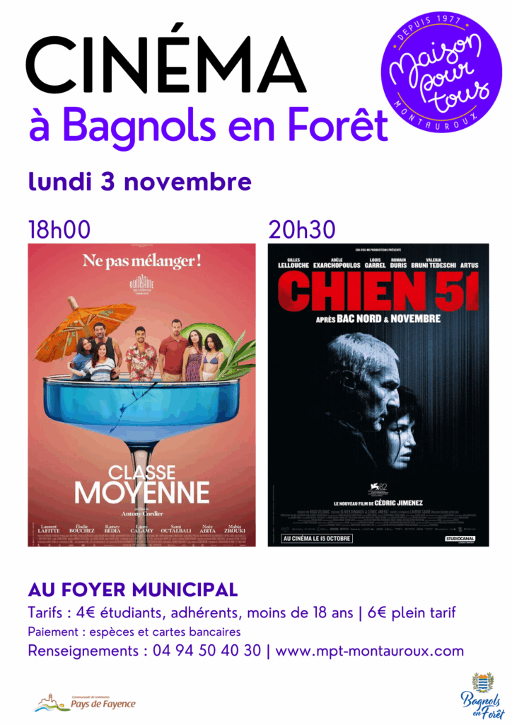 La Maison Pour Tous réalise les projections à Bagnols-en-Forêt les 1er et 3ème lundis de chaque mois.