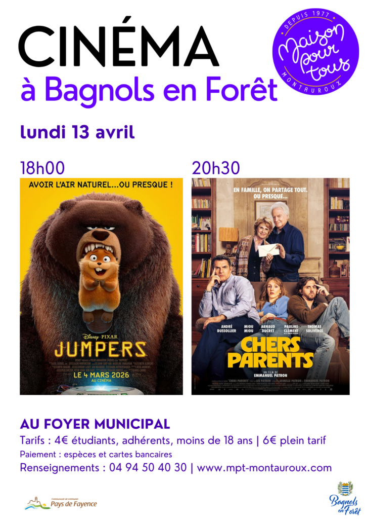 La Maison Pour Tous réalise les projections à Bagnols-En-Foret les 1er et 3ème lundis de chaque mois.