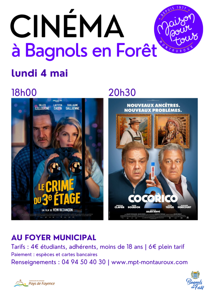 La Maison Pour Tous réalise les projections à Bagnols-En-Foret les 1er et 3ème lundis de chaque mois.