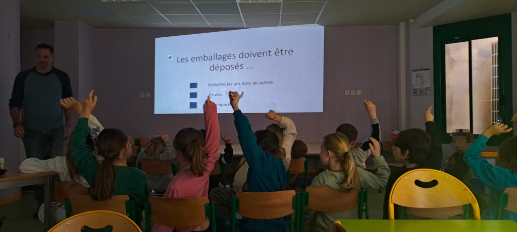 Sous la forme d’un QCM participatif, les enfants ont pu tester leurs connaissances sur le tri des déchets, le recyclage ou encore le devenir de nos poubelles une fois collectées.
