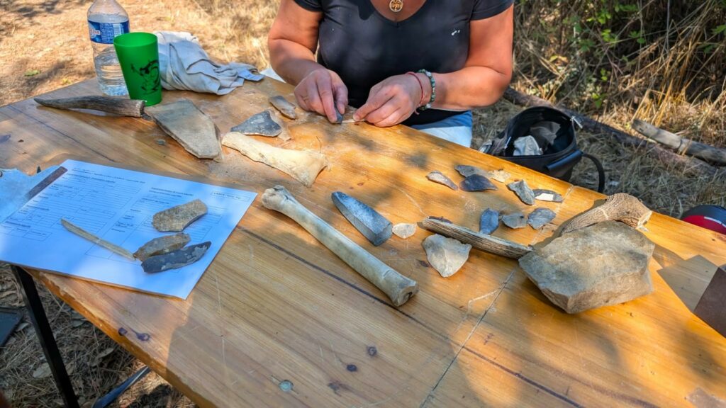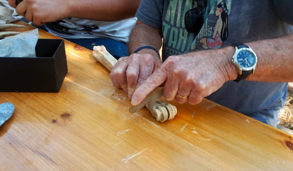 Les participants ont pu s’initier à la reproduction d’aiguilles en os préhistoriques, datant du Paléolithique supérieur au Néolithique (de 45 000 à 4 000 ans), à l’aide d’outils reconstitués d’époque.